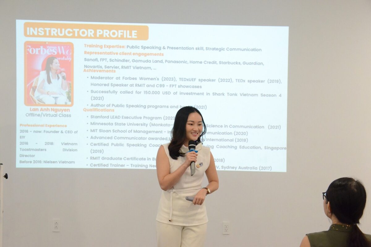 “Khóa đào tạo Public Speaking của EIY giúp tôi nói chuyện một cách chân thật và tự tin, tạo sức ảnh hưởng mạnh mẽ đến đồng đội, các bên liên quan và cấp quản lý.”