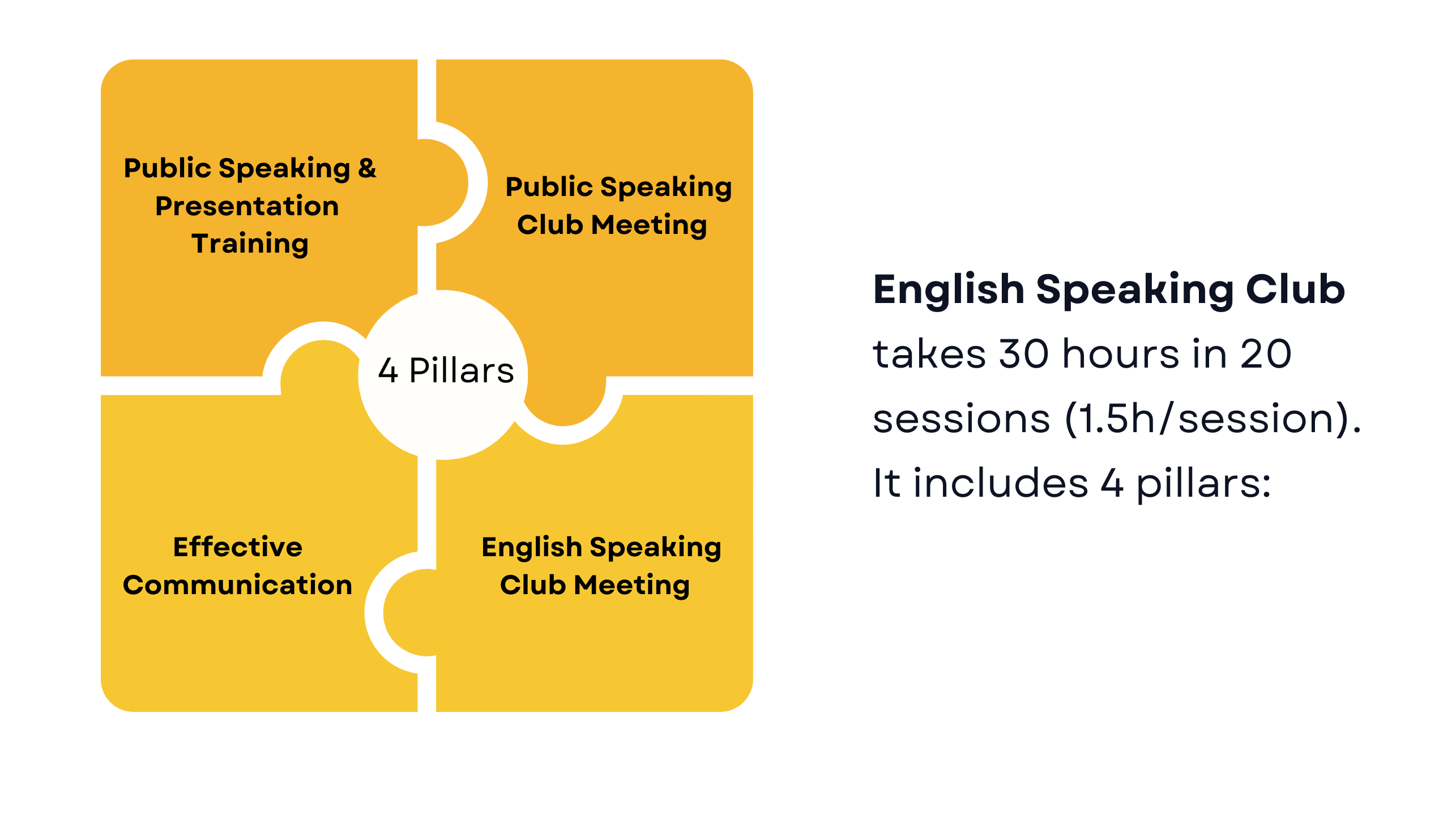 Public Speaking Club – Câu lạc bộ Public Speaking là một trong những chương trình gắn kết nhân viên (employee engagement) nổi bật của EIY. Chương trình tập trung vào việc xây dựng môi trường giao tiếp tiếng Anh chuyên nghiệp giữa các nhân viên trong doanh nghiệp. Với các hoạt động giúp học viên vượt qua nỗi sợ, tự tin nói trước đám đông, nói không cần chuẩn bị,… chương trình sẽ giúp đội ngũ nhân viên tham gia cải thiện kỹ năng giao tiếp trong công việc.